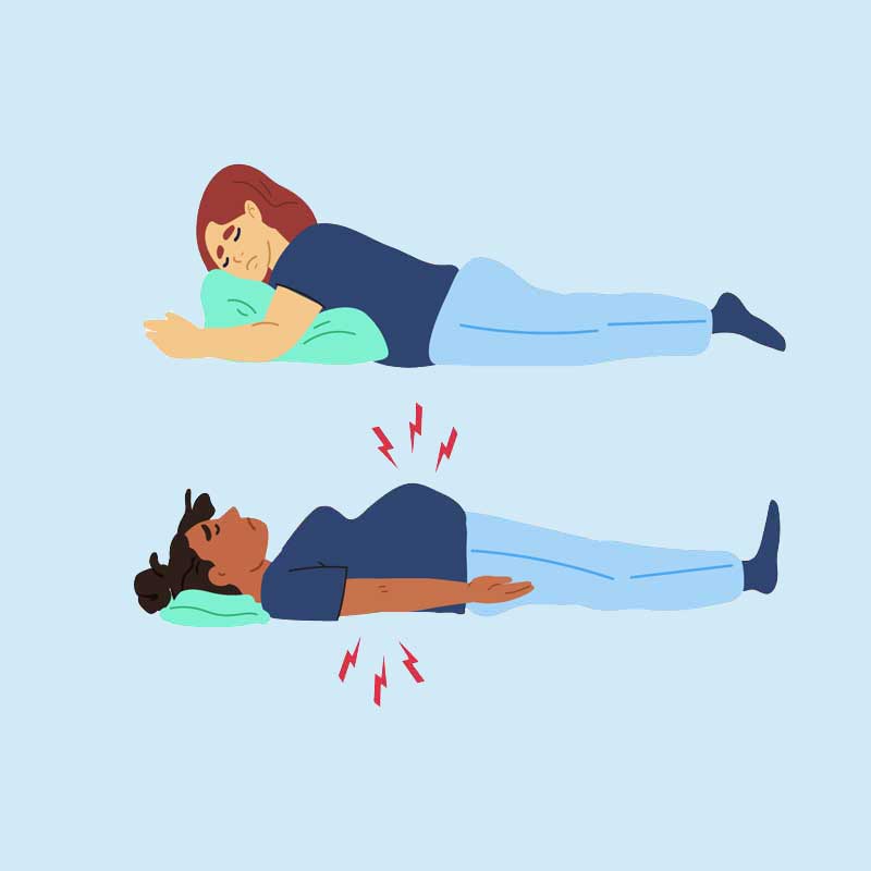 Spavanje na leđima: Spavanje na leđima može povećati pritisak na glavnu arteriju srca i kičmu, što može dovesti do problema sa cirkulacijom i bolovima u leđima.